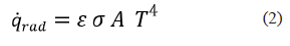 donde la constante de Stefan-Boltzmann es σ = 5.67×10⁻⁸ W/(m² K⁴), A es el superficie de emisión y T la temperatura absoluta.