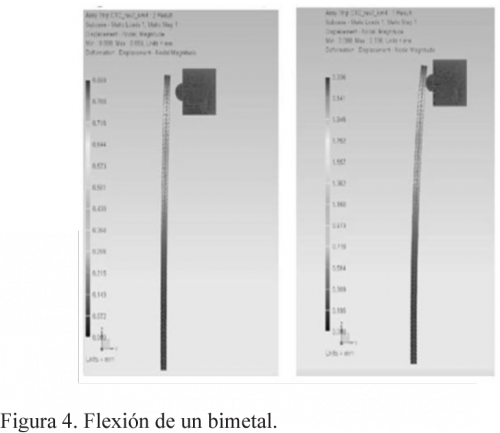 Un bimetal en cantiléver necesita mucho calor para flexionarse y así ejercer una fuerza (figura IV). El problema existe en que la temperatura es excesiva para poderse flexionar.