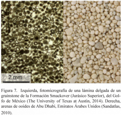 Existe un tipo de roca carbonatada o caliza que está compuesta por granos no mayores a los 2 mm de diámetro de forma redonda que se llaman ooides y cuando esta roca se compone exclusivamente de ooides se le llama “oolita”. Estas rocas calcáreas formadas por ooides (figura 1) (Akbar et al., 2001) son creadas en ambientes de plataforma o rampas marinas, comprenden más de 50% de las reservas carbonatadas de hidrocarburos (Flügel, 2010).